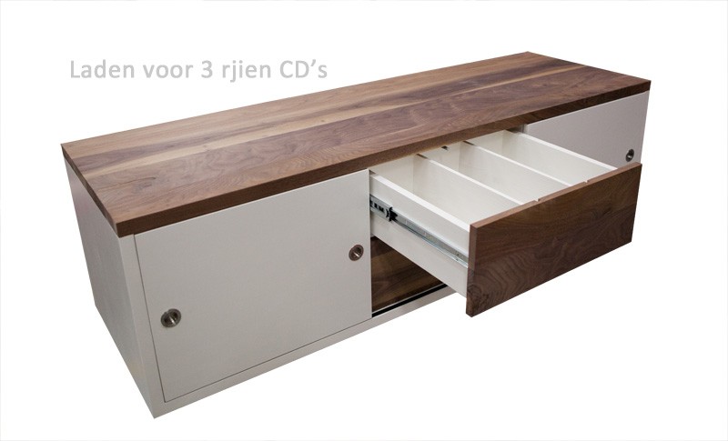Voorzien van 2 laden, met of zonder vakverdeling voor cd's.