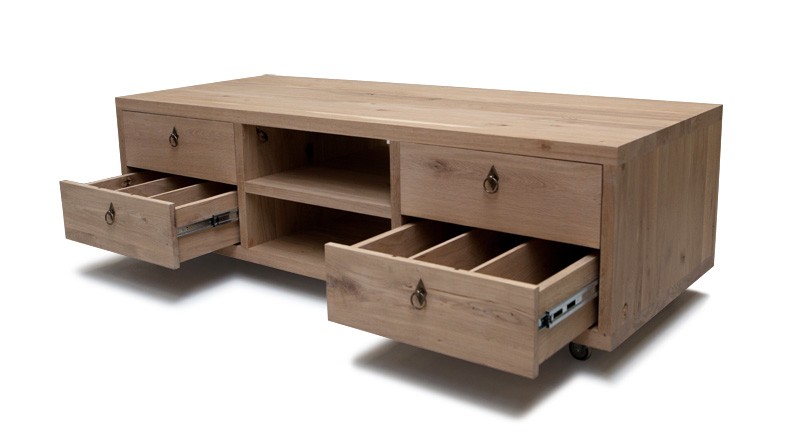Dit audiomeubel is gemaakt van massief (eiken)hout. Wil je liever een andere houtsoort? Dat kan ook! Vrijwel alle houtsoorten zijn op verzoek mogelijk.