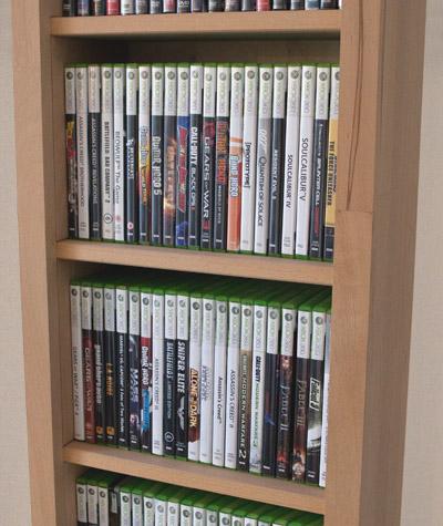 Ook voor ieder soort computergame hebben wij passende oplossingen. Zo zijn onze dvd-kasten precies geschikt voor de hoesjes van de X-Box 360 en de Nintendo Wii. Ook voor afwijkende maten hoesjes - zoals de Nintendo DS - kunnen we een kast op maat maken. Dit kan zowel een staande kast, alsook een hangend spellenrek voor aan de muur worden. Uiteraard in alle kleuren en houtsoorten leverbaar. Ook verlichting in de kast is een optie.