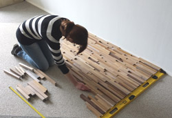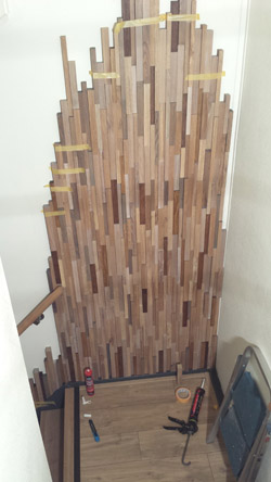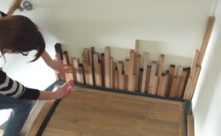 Enkele weken schuren en oliën later liggen er zo'n 1200 blokjes klaar om aan de wand gemonteerd te worden.