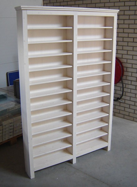 Ook deze kast kunnen wij op maat maken. Wij maken ieder meubel op bestelling, en het maakt voor ons niet uit of dit een standaardmaat of een afwijkende maat is. Vandaar dat bij ons maatwerk niet duurder is dan een standaardmaat. Kies zelf het aantal vakken boven elkaar, het aantal vakken naast elkaar, de kleur, de indeling, en maak ook een combinatie van CD, DVD en Blu-ray in één kast.