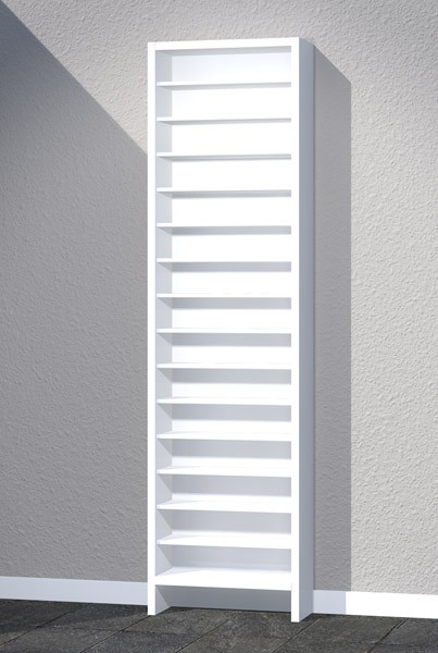 De kast heeft 30 mm massief houten wanden, dus geen holle lijsten waar de cd's achter kunnen vallen. Je kunt dus ook de eerste paar cd's pakken zonder eerst een stapel uit de kast te hoeven pakken. Er passen 60 cd's in een cd-vak. Ook leverbaar als kast voor DVD's.