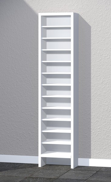 Deze kast is ook leverbaar met deuren. Hiervoor moet een aanpassing aan de wanden worden gedaan, daarom dienen de deuren wel tegelijk met de kast besteld te worden. De prijs is zowel voor de deuren als voor de aanpassing aan de kast. Zie het artikel cd-kast met een deur.