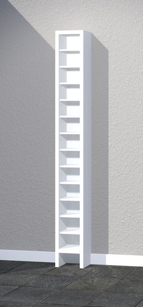 De kast heeft 30 mm massief houten wanden, dus geen holle lijsten waar de cd's achter kunnen vallen. Je kunt dus ook de eerste paar cd's pakken zonder eerst een stapel uit de kast te hoeven pakken. Er passen 20 cd's in een cd-vak. Ook leverbaar als kast voor DVD's.