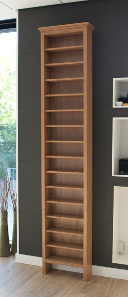 Afm. 253x48cm. Deze massief houten kast biedt plaats aan 600 cd's.