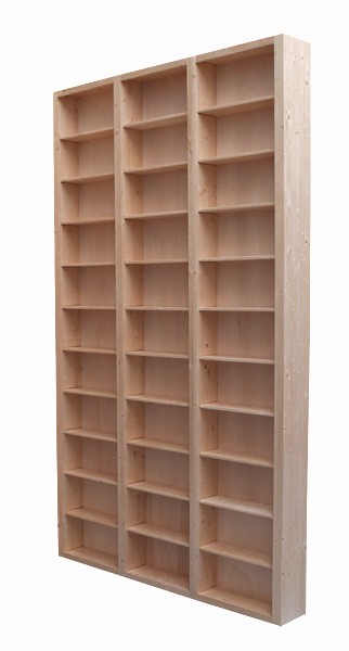 Deze cd-kast heeft 30 mm massief houten wanden, dus geen holle lijsten waar de cd's achter kunnen vallen.