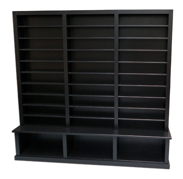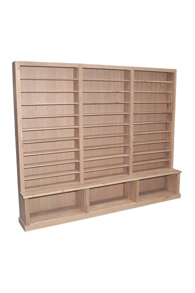 Deze platenkast heeft 3 vakken naast elkaar. Ook andere vakverdelingen zijn mogelijk.
