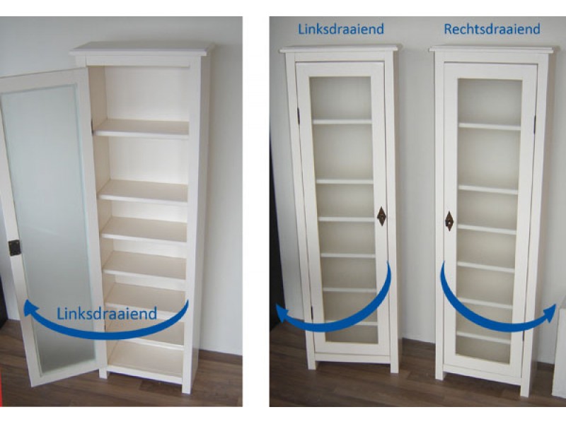 De deur wordt in hetzelfde materiaal en dezelfde kleur afgewerkt als de kast zelf zodat het een mooi geheel wordt. Wil je een andere kleur wilt voor de deur kan dit natuurlijk ook, bijvoorbeeld een mooie houtkleurige kast met witte of zwarte deuren.