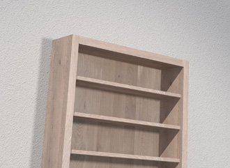 De kast heeft 30 mm massief houten wanden, dus geen holle lijsten waar de dvd's achter kunnen vallen.