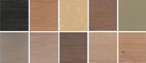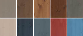 Hier staan alle kleuren beits die wij leveren. Een waterlakbeits geeft zowel bescherming als kleur..