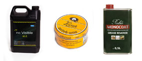 Hier staan onze kleuren Monocoat olie. Deze geven bescherming en kleur aan het hout..