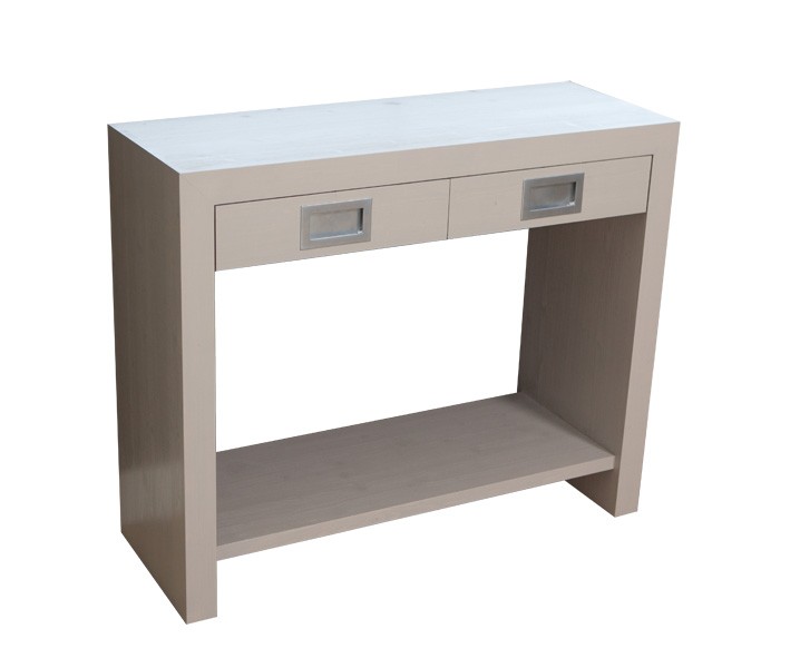De sidetable is gemaakt van 50 mm dik hout. Het meubel is uitgevoerd met 2 laden.