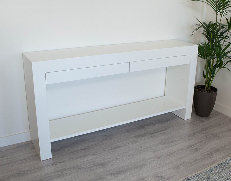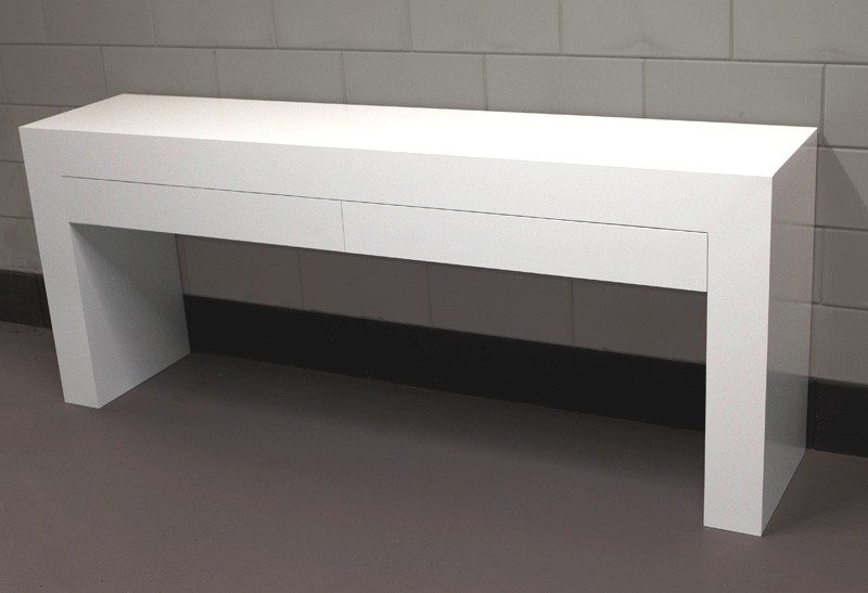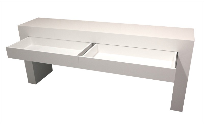 Deze sidetable op maat is 8 of 10 cm dik, een mooie robuuste uitstraling. De hoogte van een ladefront is eveneens 8 of 10 cm. Kan worden uitgevoerd met een legplank. Standaard met 2 laden, maar 3 laden is op verzoek ook mogelijk.