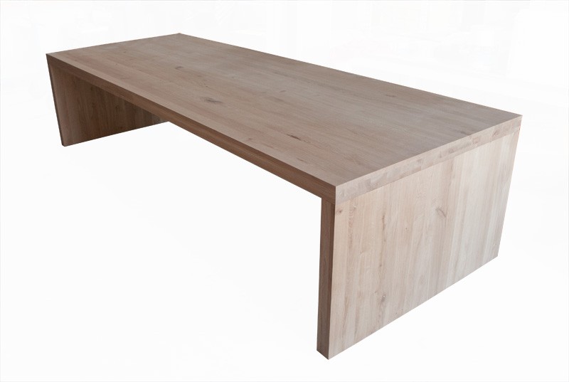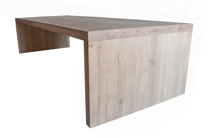 Ook deze tafel kunnen wij op maat leveren. Wij produceren ieder meubel op bestelling in onze eigen werkplaats, en het maakt voor ons weinig uit of dit een standaardmaat of een afwijkende maat is. Vandaar dat bij ons maatwerk niet duurder is dan een standaardmaat. Nagenoeg ieder maat blad of poot is leverbaar, ook bijzondere vormen met ongebruikelijke uitsparingen zijn geen probleem.