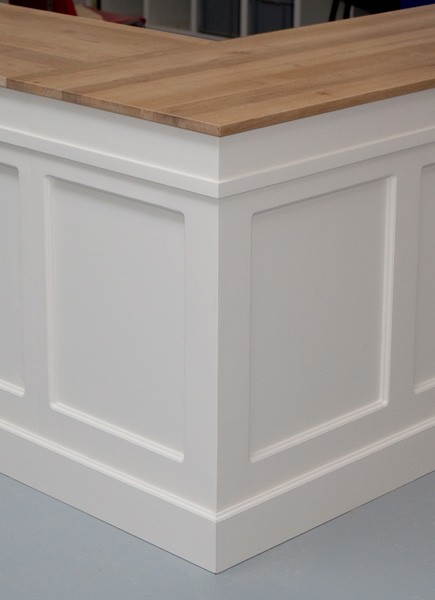 Winkelbalie met massief houten blad