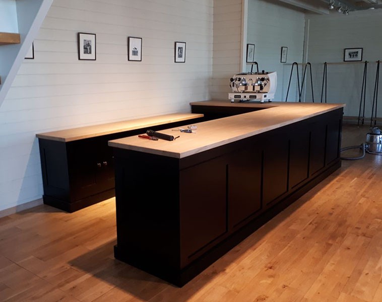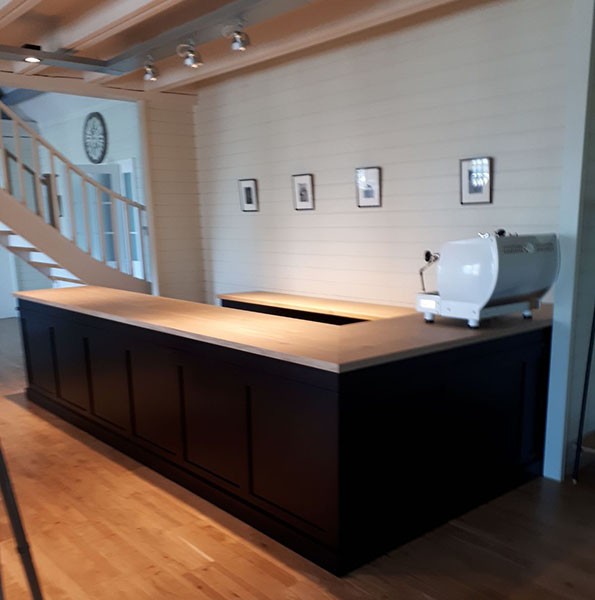 Een extra kastenwand achter de balie geeft veel sfeer en ruimte!